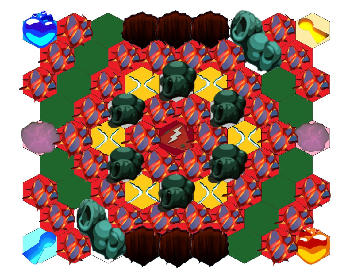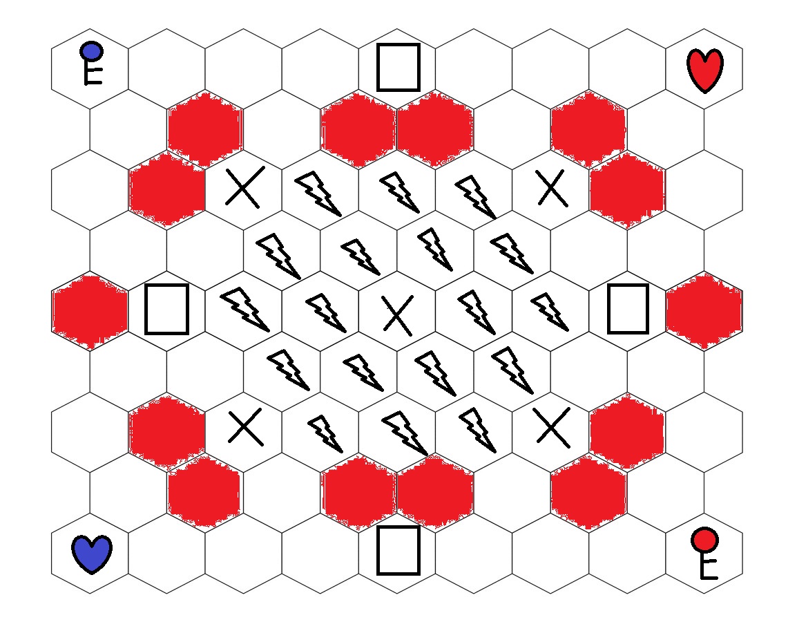 After analyzing it and verifying that it is fair for both parties, I suggest this arrangement for the map (which I captured in the image) but it can be implemented in any other if you wish. Accommodation is intended for hand-to-hand combat or all-out warfare, but a devastating force or a siege on the heart could change the situation; the rush are useless if you don’t have flying units or wall breakers but the real firefight is for the imaginary and reinforcements.